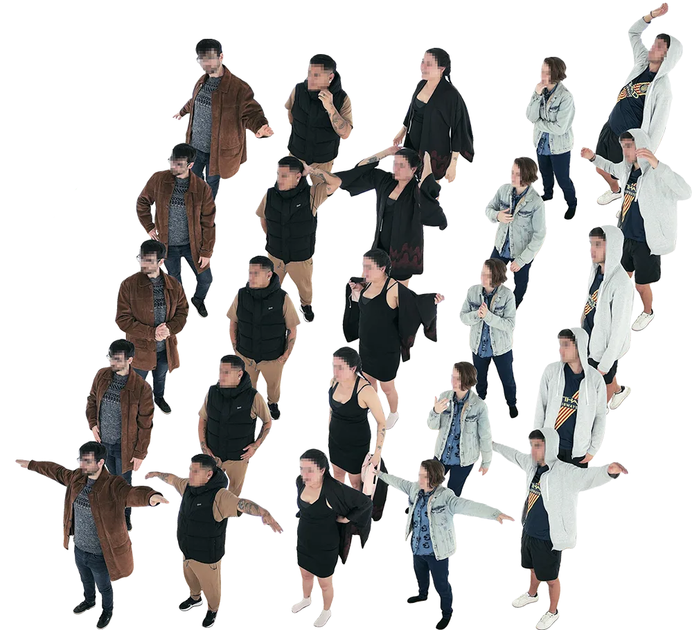 Explore the diversity and quality of the captured data, designed to push the boundaries of human-centric rendering and virtual try-on.